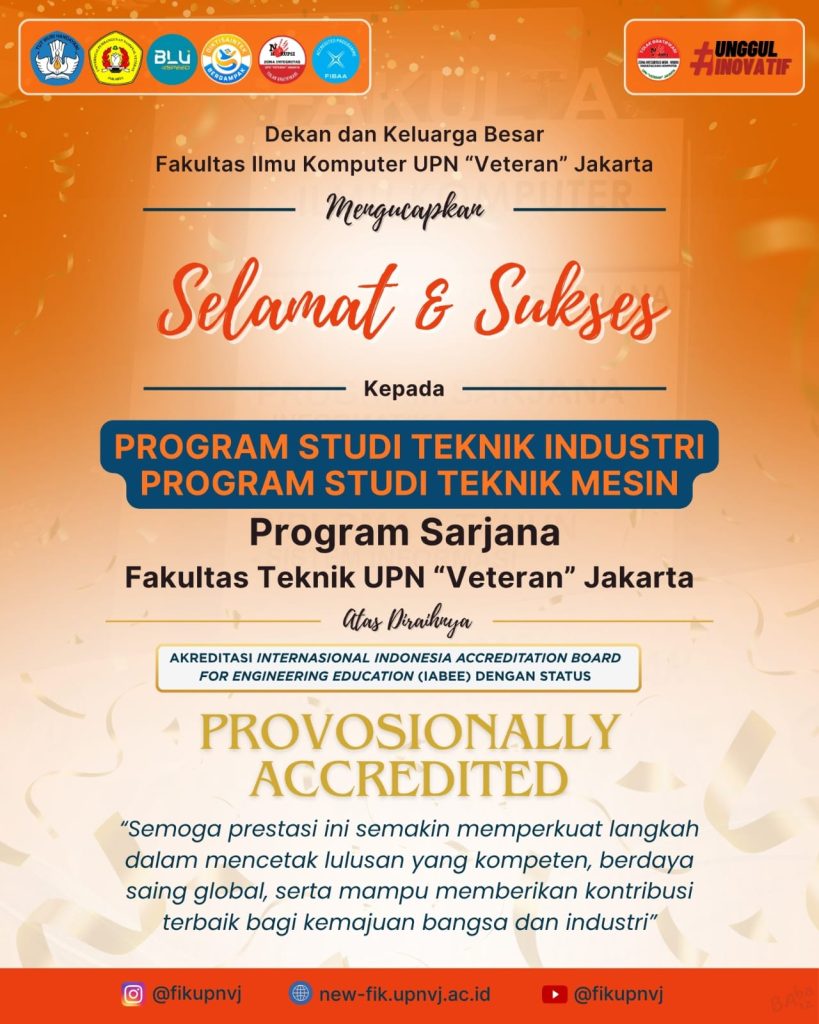 FIK UPN “Veteran” Jakarta bangga dapat membantu para generasi muda menjadi generasi unggul yang berhasil dan sukses dalam menyiapkan masa depannya. Bekali diri dengan pengetahuan, dan keterampilan, sehingga setelah lulus nanti tidak perlu menunggu waktu lama untuk mendapatkan pekerjaan, atau studi lanjut, atau menjadi usahawan.