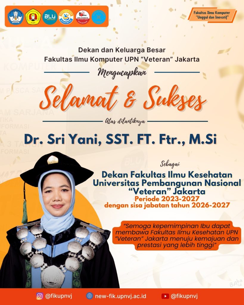 Segala Puji bagi Allah SWT, Tuhan Yang Maha Esa, atas karunia dan rahmatNya, yang mengumpulkan di kampus orange, Fakultas Ilmu Komputer (FIK) UPN “Veteran” Jakarta. Capaian luar biasa FIK UPN “Veteran” Jakarta adalah bertambahnya satu Program Studi yaitu Prodi Sains Data pada tahun 2024, dan pada akhir 2024, FIK menerima anugerah Diktisaintek kategori Zona Integritas.