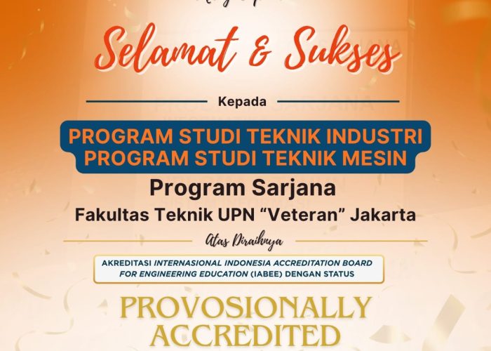 FIK UPNVJ Mengucapkan Selamat & Sukses kepada Prodi Teknik Industri & Teknik Mesin Program Sarjana atas Diraihnya Akreditasi Internasional