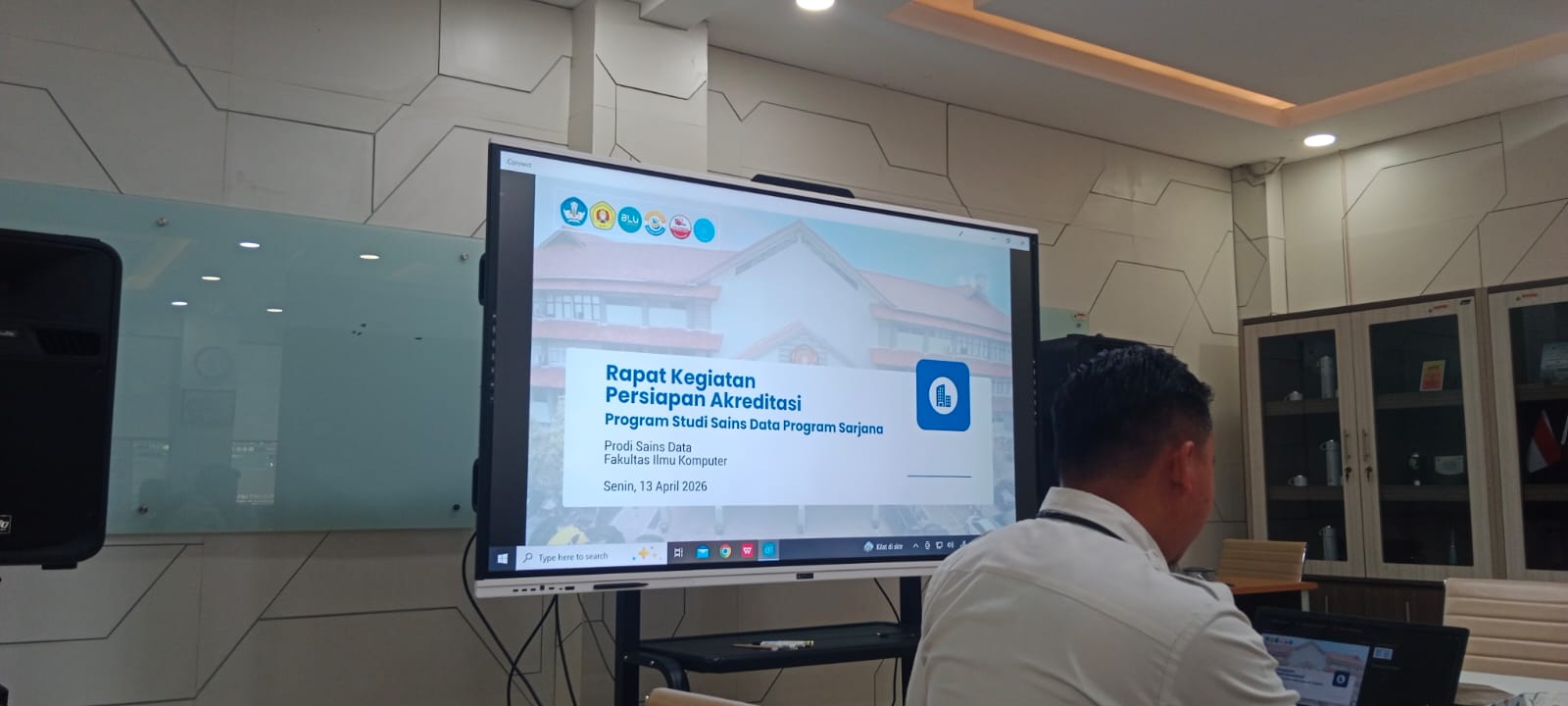 FIK UPNVJ – Fakultas Ilmu Komputer (FIK) Universitas Pembangunan Nasional “Veteran” Jakarta (UPNVJ) terus mematangkan persiapan akreditasi Program Studi Sains Data Program Sarjana melalui rapat koordinasi yang dilaksanakan pada Senin, 13 April 2026, bertempat di Ruang Rapat FIK.
