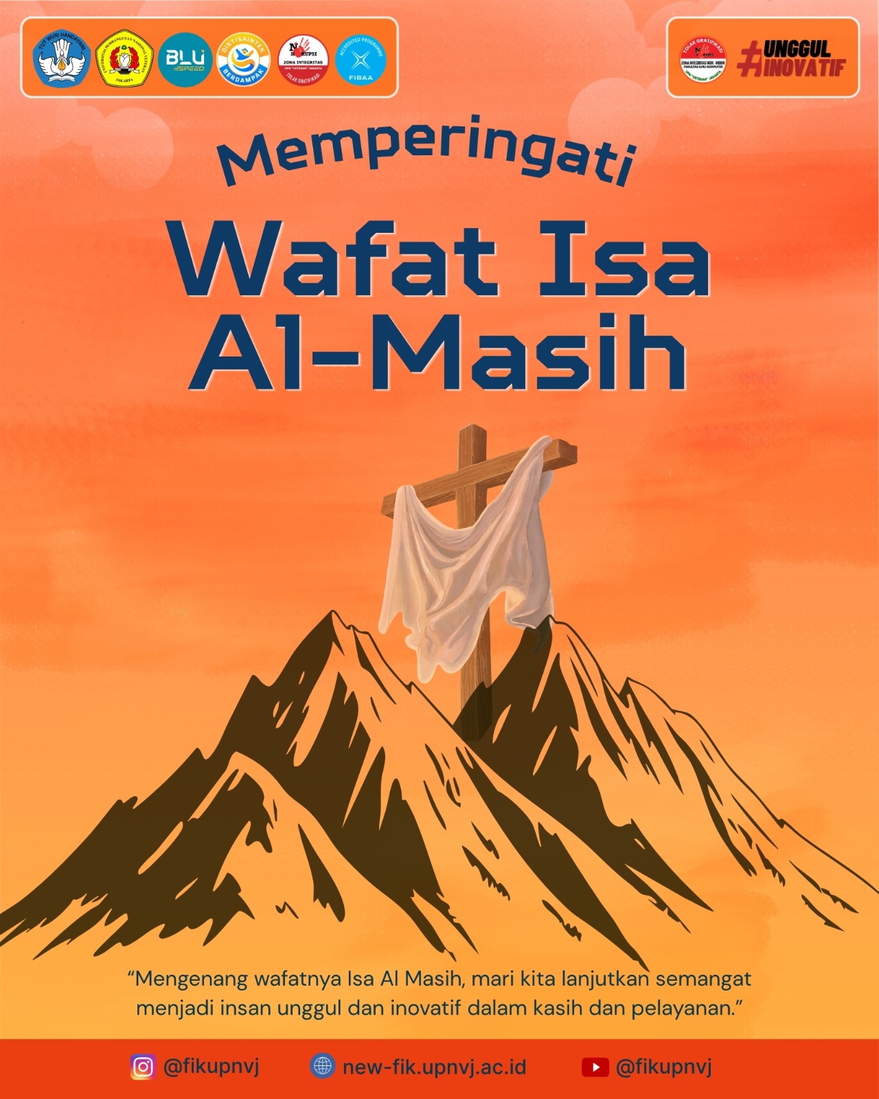 FIK UPNVJ – Seluruh Jajaran Dekanat, Dosen, Tenaga Kependidikan dan Keluarga Besar Fakultas Ilmu Komputer (FIK) Universitas Pembangunan Nasional “Veteran” Jakarta (UPNVJ) mengucapkan Selamat Memperingati Hari Wafat Isa Al-Masih Tahun 2026.