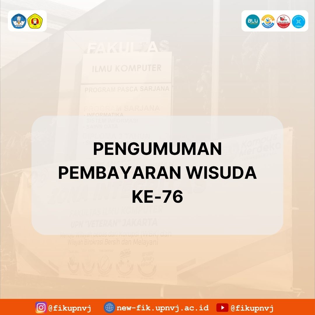 Pengumuman Pembayaran Wisuda ke-76 29 March 2026 Reihan FIK 0 View Fullscreen Informasi lainnya dapat dilihat pada web UPNVJ Post Views: 22 Share Tags: FIK UPNVJInformasiKampus Bela NegaraUPN "Veteran" JakartaUPNVJ