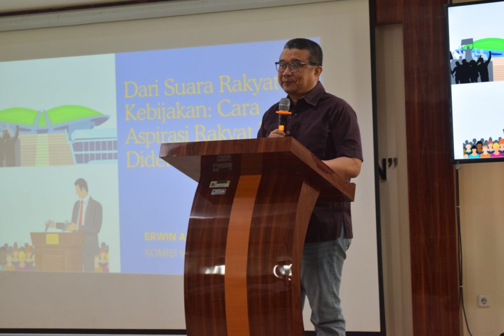 Bapak Erwin juga menekankan peran mahasiswa dalam memanfaatkan teknologi untuk memantau aspirasi publik dan mendorong transparansi DPR. Beliau menutup dengan pesan bahwa partisipasi aktif generasi muda sangat penting agar aspirasi rakyat benar-benar terintegrasi dalam proses legislatif dan melahirkan kebijakan yang lebih akuntabel serta relevan.